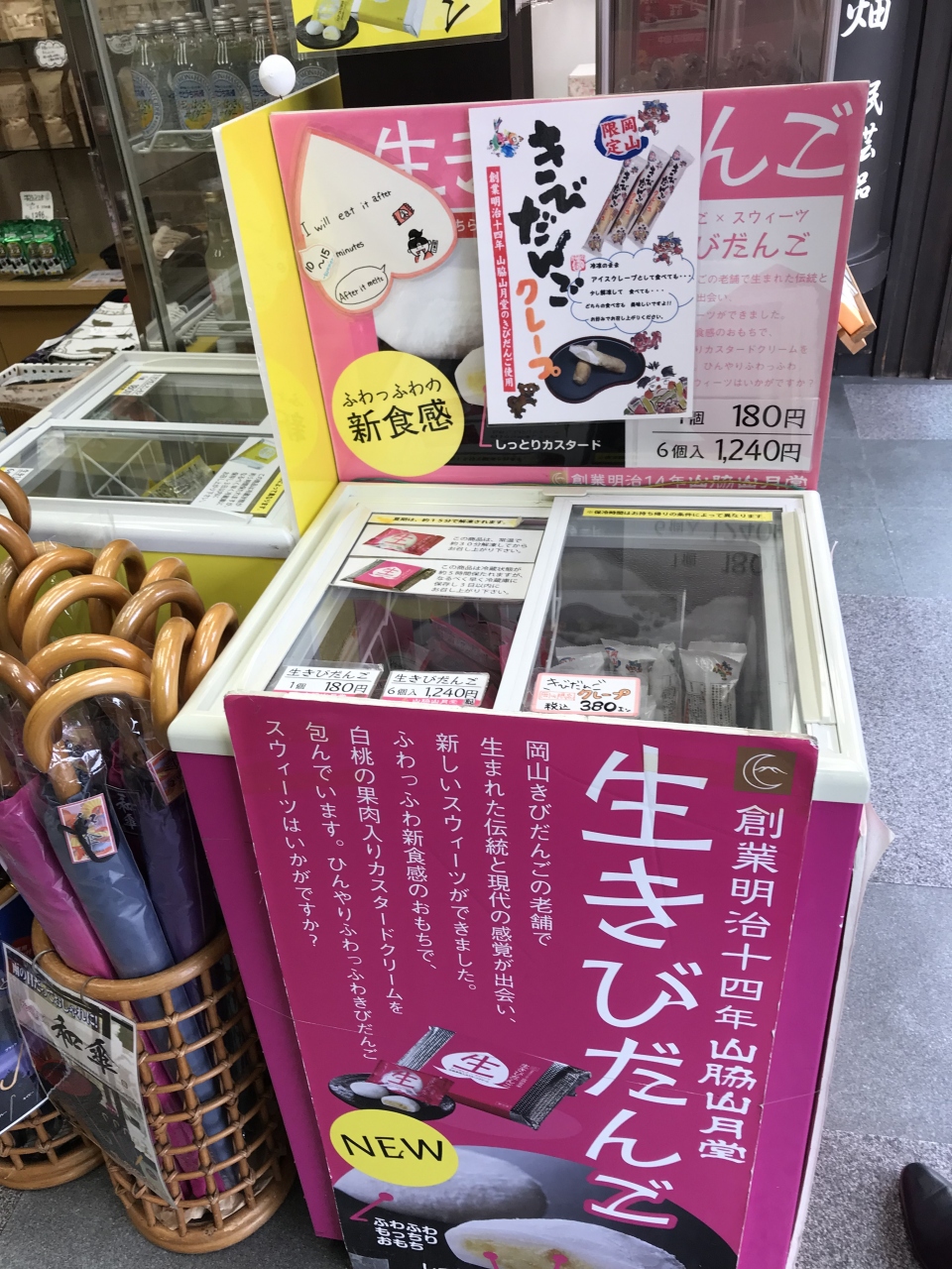 岡山土産が幅広く売られていて、中でもきび団子は、各社の製品が揃っていました。