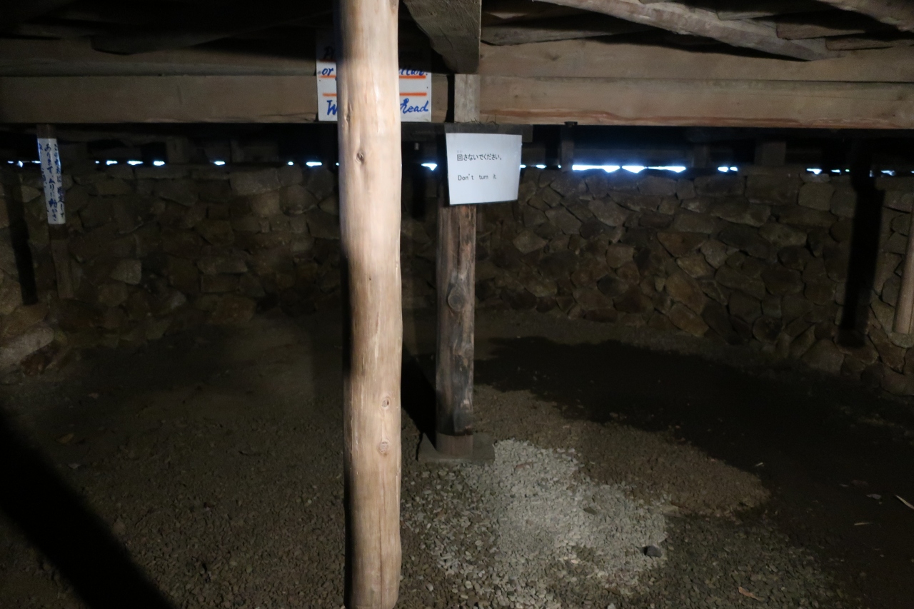 訪れたときは舞台の前の客席が工事中で正面からは建物に近寄ることは出来ませんでした。しかし、舞台の裏に回ると奈落(舞台の下)に下りることが出来、舞台を回す装置(人力)等、珍しい仕組みを見ることができ、面白いです。頭をぶつけそうになるので注意してください。