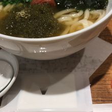 ランチはセットもありますが、単品のとろろ昆布と梅が入ったうどんを注文。