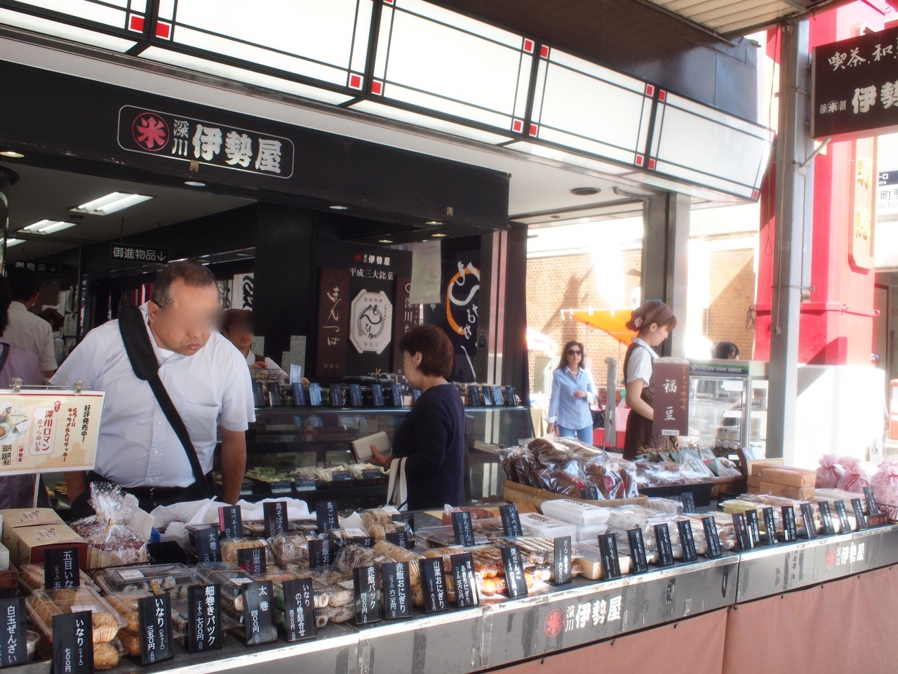 深川不動尊の参道入り口にある、お団子や饅頭など和菓子で有名なお店です。