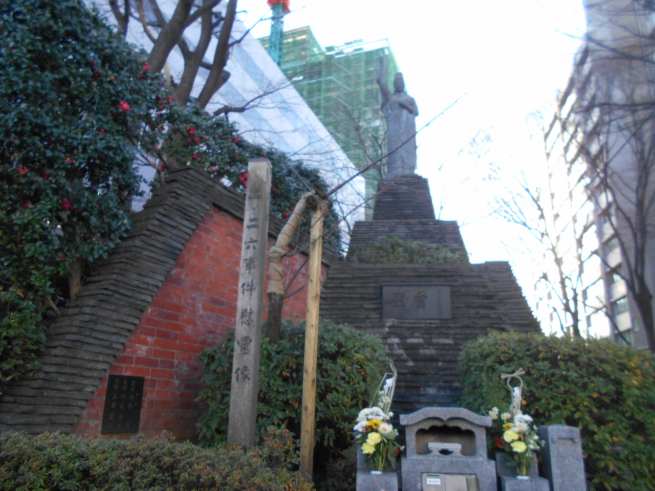 目の前にはNHK放送センターがあり、慰霊碑以外にも観音像もありました。