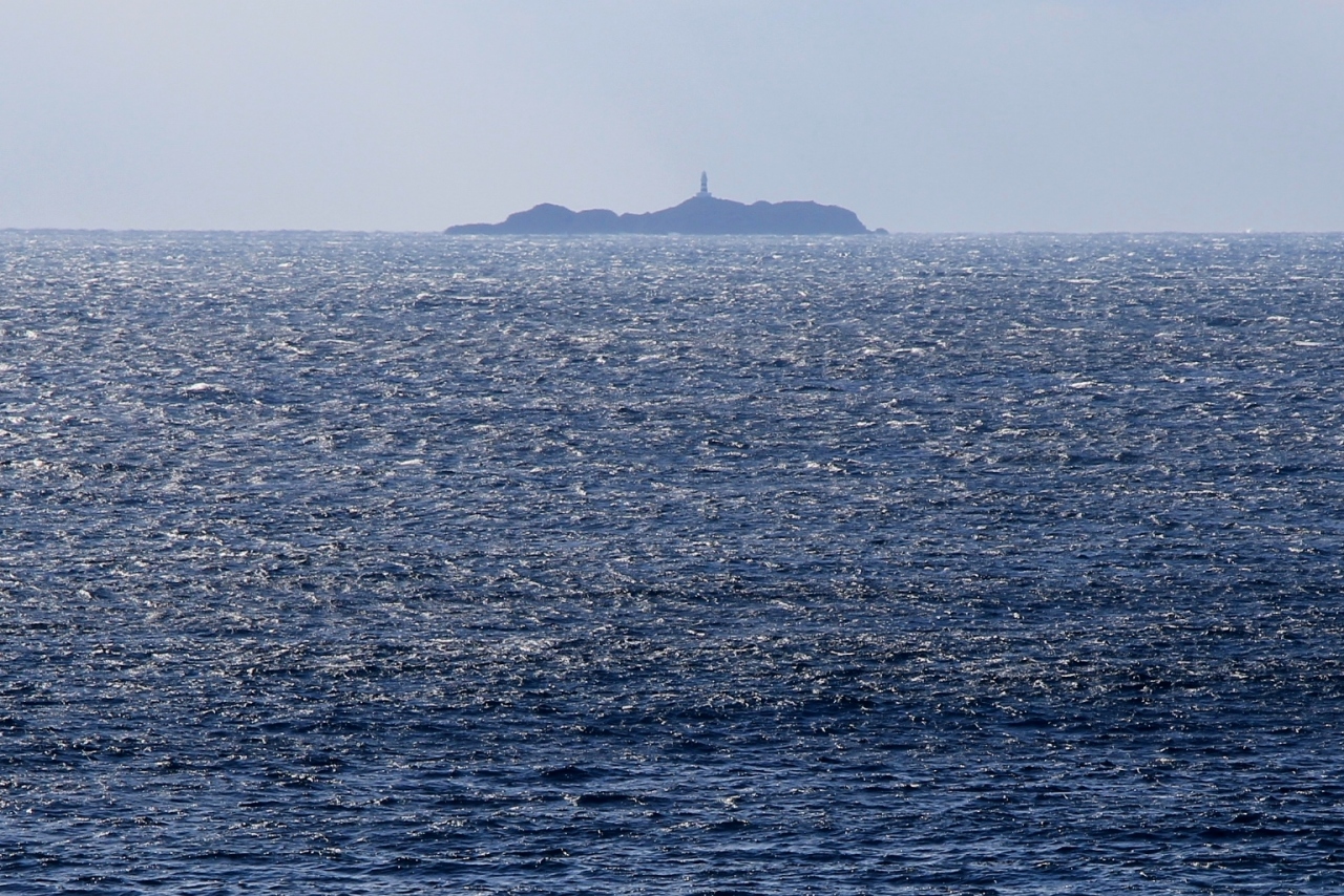神子元島灯台は、爪木崎から南に10km沖合にある無人島に建設された日本最古の洋式石造り灯台です。爪木崎灯台にその案内板が設置されていて、爪木崎から望むことが出来ます。爪木崎から大海原を眺めるときの目印の一つとなって良かったです。