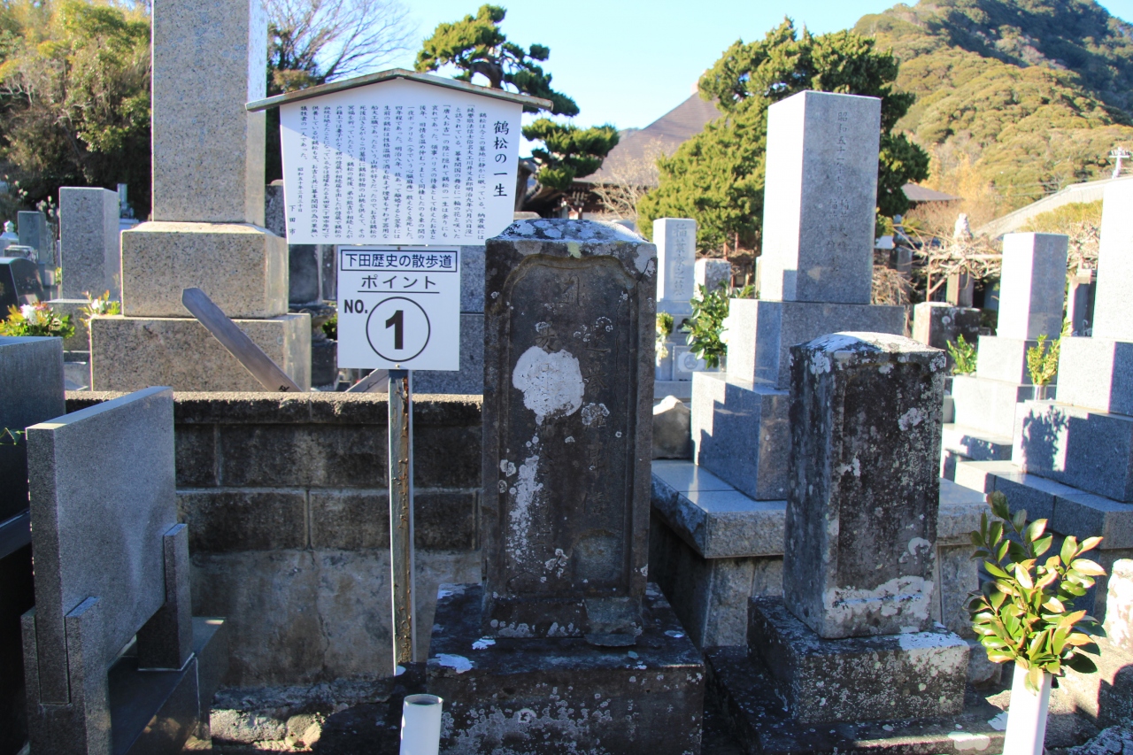 伊豆急下田駅から歩いて数分のところにあります。境内にはお吉の婚約者だった船大工・鶴松の墓があります。