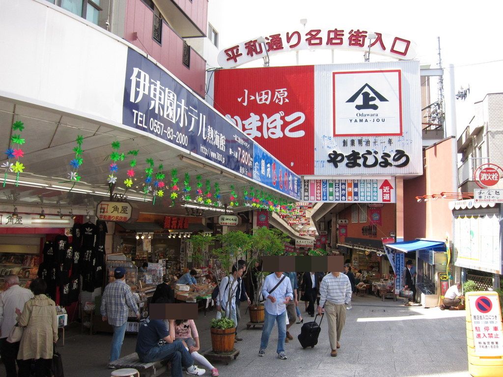 熱海駅前を右に出るとすぐにある商店街で、とにかく休日ともなれば大賑わいで温泉まんじゅうやかまぼこや干物など色々なお土産屋さんが並んでいてどこも繁盛しています。