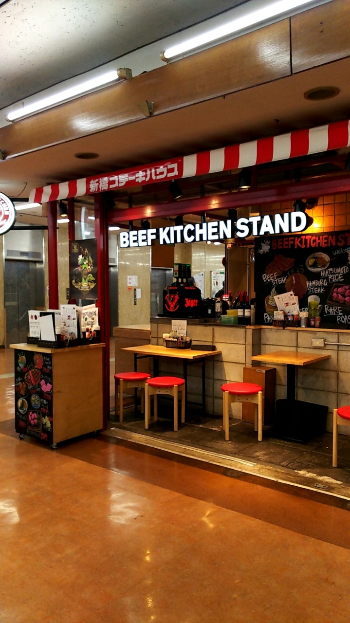 新橋駅前ビル1号館(地下1階)の飲食店街にある肉バルです。立呑屋や小さな居酒屋などが並ぶ飲食店街にあるので目立つ存在です。ビフテキ、ハンバーグ、アヒージョなどを格安で食べることができるのでコスパはとても良いです。