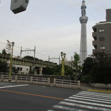 東京メトロ銀座線浅草駅から隅田川に架かる吾妻橋を渡り左折し隅田区役所の先、隅田公園の入口前の源森川(源兵衛堀)に架かっている枕橋に歩いて10分ぐらいで着きます。枕橋は水戸屋敷内に隅田川から引き入れた小さな堀で架かる小橋を新小梅橋と呼んでいたがいつの頃からか枕橋と総称されるようになったそうです。現在の枕橋は昭和3年に架け替えられたもので親柱が独特の意匠で昭和初期のモダンな雰囲気が味わえ見ごたえあります。ここから眺める東京スカイツリーは綺麗ですのでシャッターポイントにお奨めします。