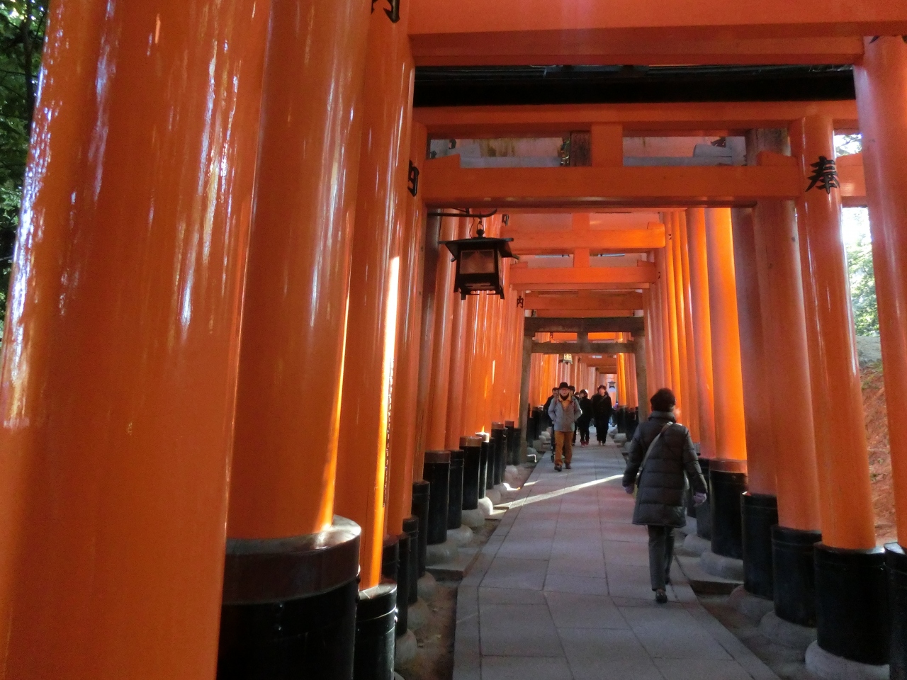 京都からJRで二駅、駅を降りるとすぐ目の前が広い参道です。大きな鳥居をくぐり参道を進むと壮麗な楼門があります。色鮮やかな朱の門が青空に映えます。本殿は荘厳で高い格式を感じます。続いての有名な千本鳥居は美しく独特な景観と体験でした。千本鳥居を抜けると奥社奉拝所があり傍におもかる石があります。願い事をして丸い石を持ち上げた時に感じる重さが予想より軽ければ願い事が叶い、重ければ叶わないと言われています。結果は内緒です。更に稲荷山を登り一ノ峰まで参拝できますがそれは次回のお楽しみとしました。ここまで平日の9時前後でしたのでさほどの混雑もなく周れました。1月15に参拝しましたが本殿ではしめ飾りを外していました。関西ではお飾りは15日までするようです。境内には本殿前を始め何か所かに稲穂や巻物、鍵、玉をくわえた一対の狐さんがおり目をひきました。