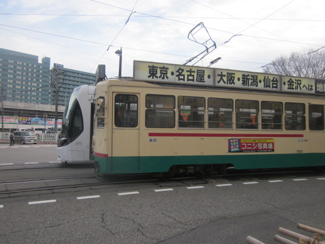 富山といえば、北陸新幹線で全国的な賑わいを見せる中で、地元の足としての鉄道を大切にしているという印象も大きい町でもあります。北側の岩瀬浜へのライトレールなども最近では有名になりましたが、やはり富山といえば、やはり地鉄の路面電車という印象が個人的には強いです。今回の6年ぶりの訪問では、海外旅への出国時間が迫っていたため、のんびりと乗車という訳にはいかなかったのが残念でしたが、電車通り沿いを歩いているだけで、新旧様々な車両に出会うことができて、改めて富山は路面電車が似合う町だなと楽しい気分になることができました。