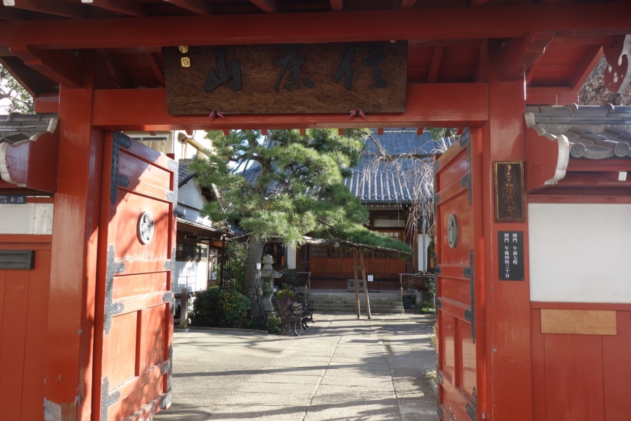 青山界隈を散策中に朱色の美しい山門に惹かれて立ち寄ったお寺です。青山霊園の近くに位置していて静かな住宅街のなかのお寺でした。山門を抜けると立派な松が植えられている境内の向こうに瓦屋根が立派な本堂が有りました。