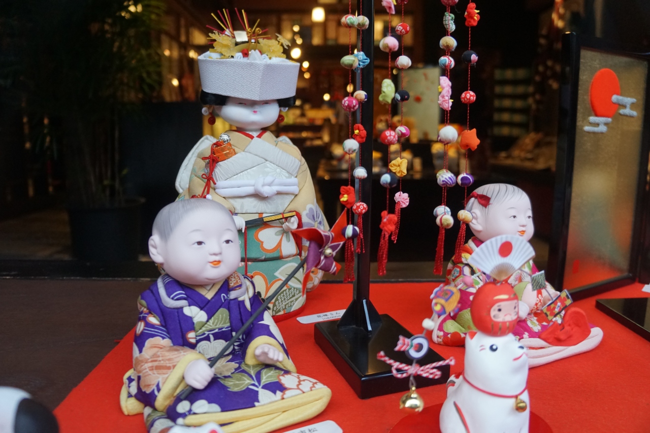 街歩きをしていて、ふと目に止まった京都くろちく。町家風の店舗は、工芸品のような民芸品のようなものを揃えたお店です。博多人形のような土人形もかわいらしくて、じっと見つめてしまいます。聞くと元々は米の袋を再利用して造った小物を商っていたのだとか。そこからここまでになるなんて。やっぱり基本はセンスが大事ということかと思います。