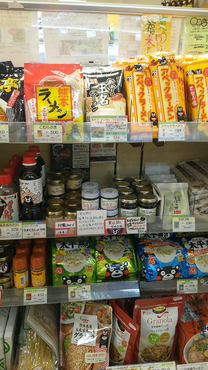 1階は生鮮食品やお菓子等。ほとんどの商品にくまもんのイラストが入っていてかわいらしかったです。
