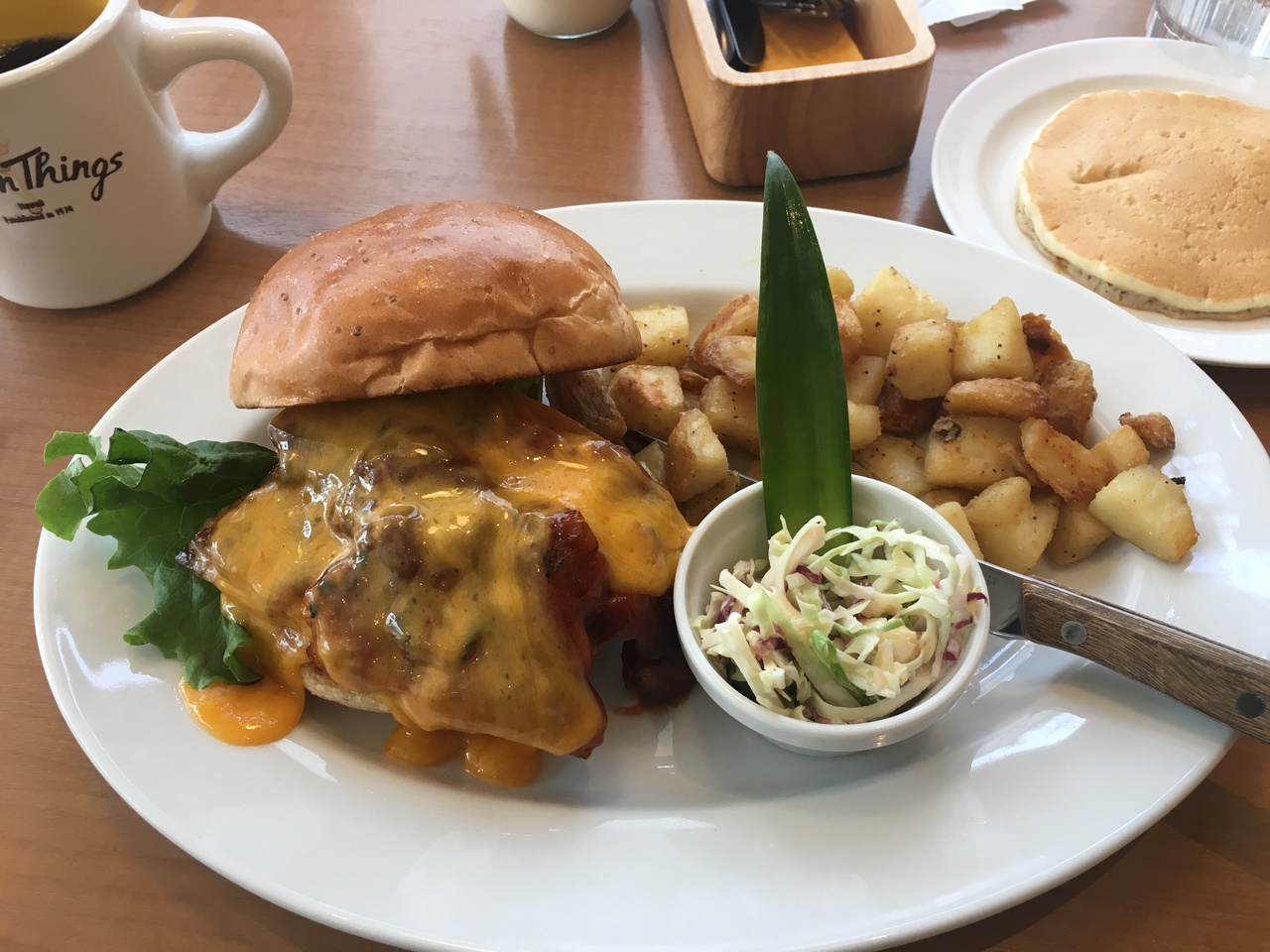 パンケーキも付け合わせの小ボリュームで味わえて、お得でした。