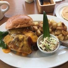 2人で本日のオムレツ(付け合わせをパンケーキ3枚に変更)とハワイアンバーガー、コナコーヒー2つをオーダーしました。