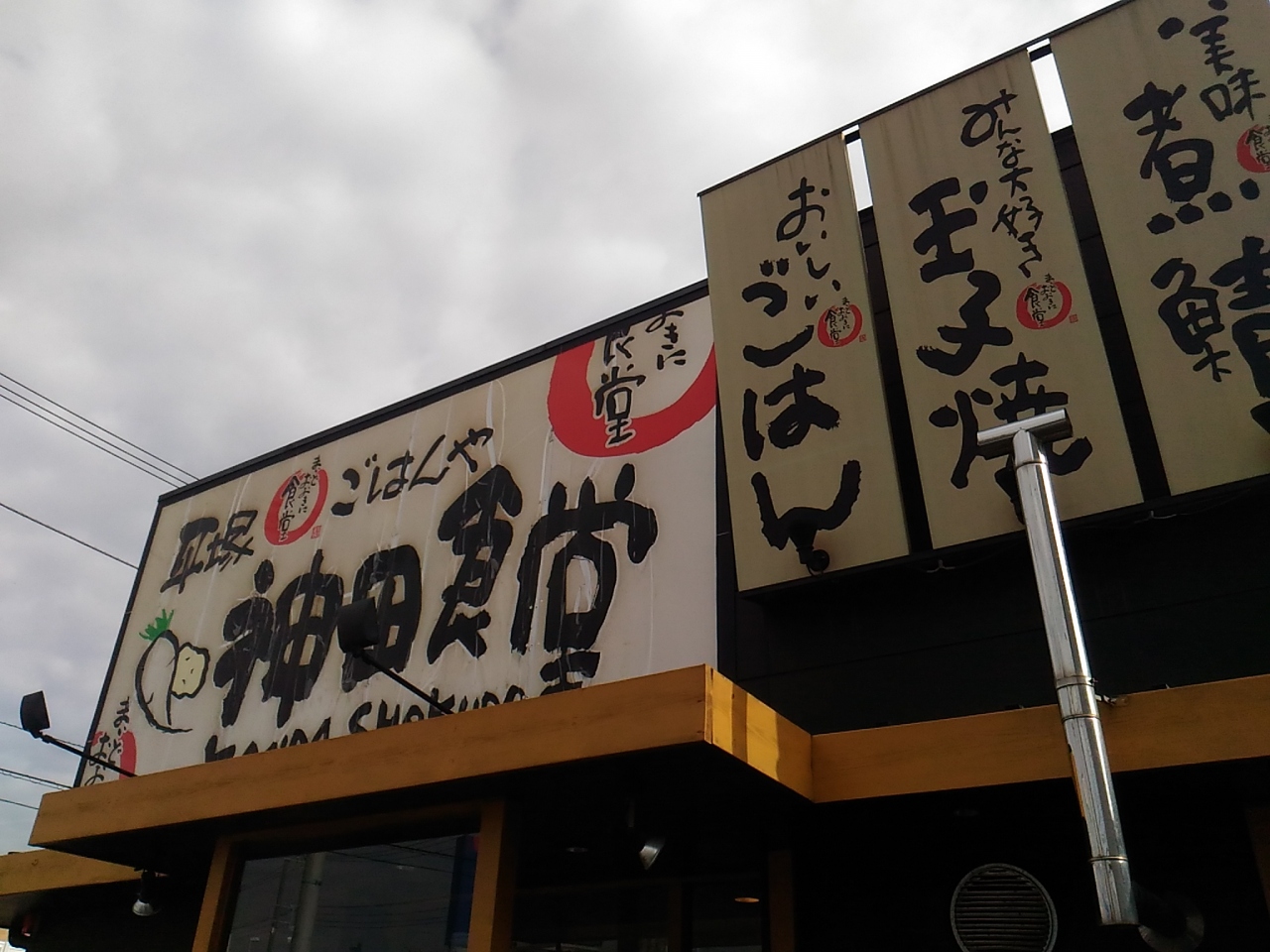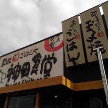 国道129号線沿いにある神田食堂です。最近、通り沿いに同じ書体で○○食堂なる看板を見かけます。トレイに好きなおかずを選んで最後に味噌汁と御飯を注文して完了。千葉でも利用した事がありますが、結構美味しいです。ただ少し計算しながら選ばないと1000円超え。御飯は大中小が同額の140円。揚げたての鳥唐揚げをススメられたので2コ注文、もやし炒め、揚出し豆腐と味噌汁&御飯大で712円也。まずまずかな?是非。
