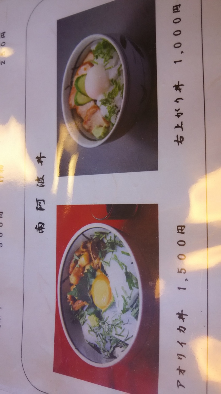 『アオリイカ丼』1500円を食べました。2種類のタレのお刺身に加えて、煮付けたゲソも入っており、量より質の一手間かけたドンブリでした。相方の頼んだ、阿波尾鶏とアオリイカの両方が入った『右上り丼』1000円も上品なお味でした。安価でボリュームがある食事を求めない方にはお勧めのお店です。