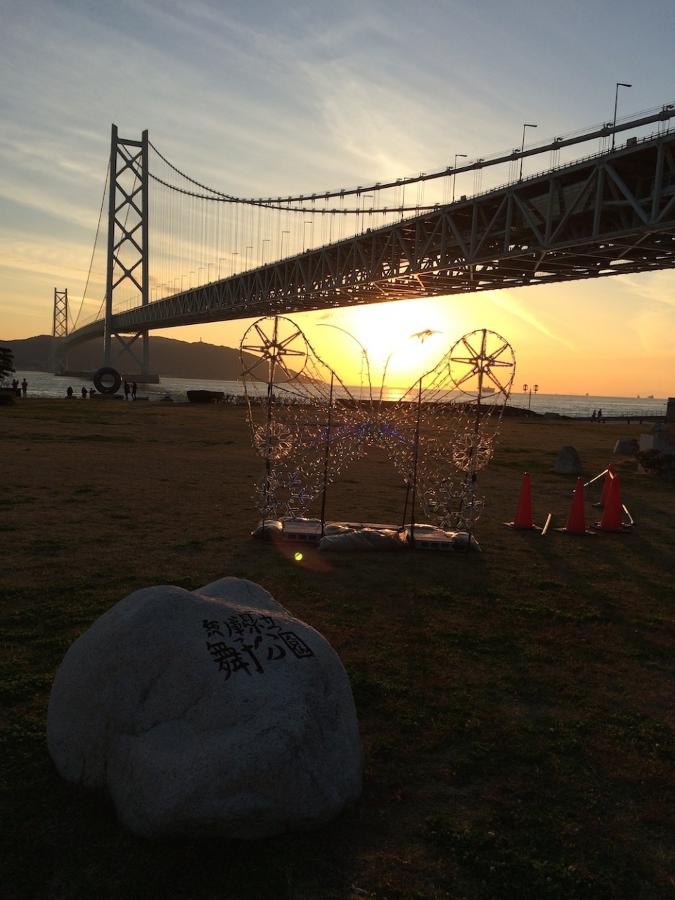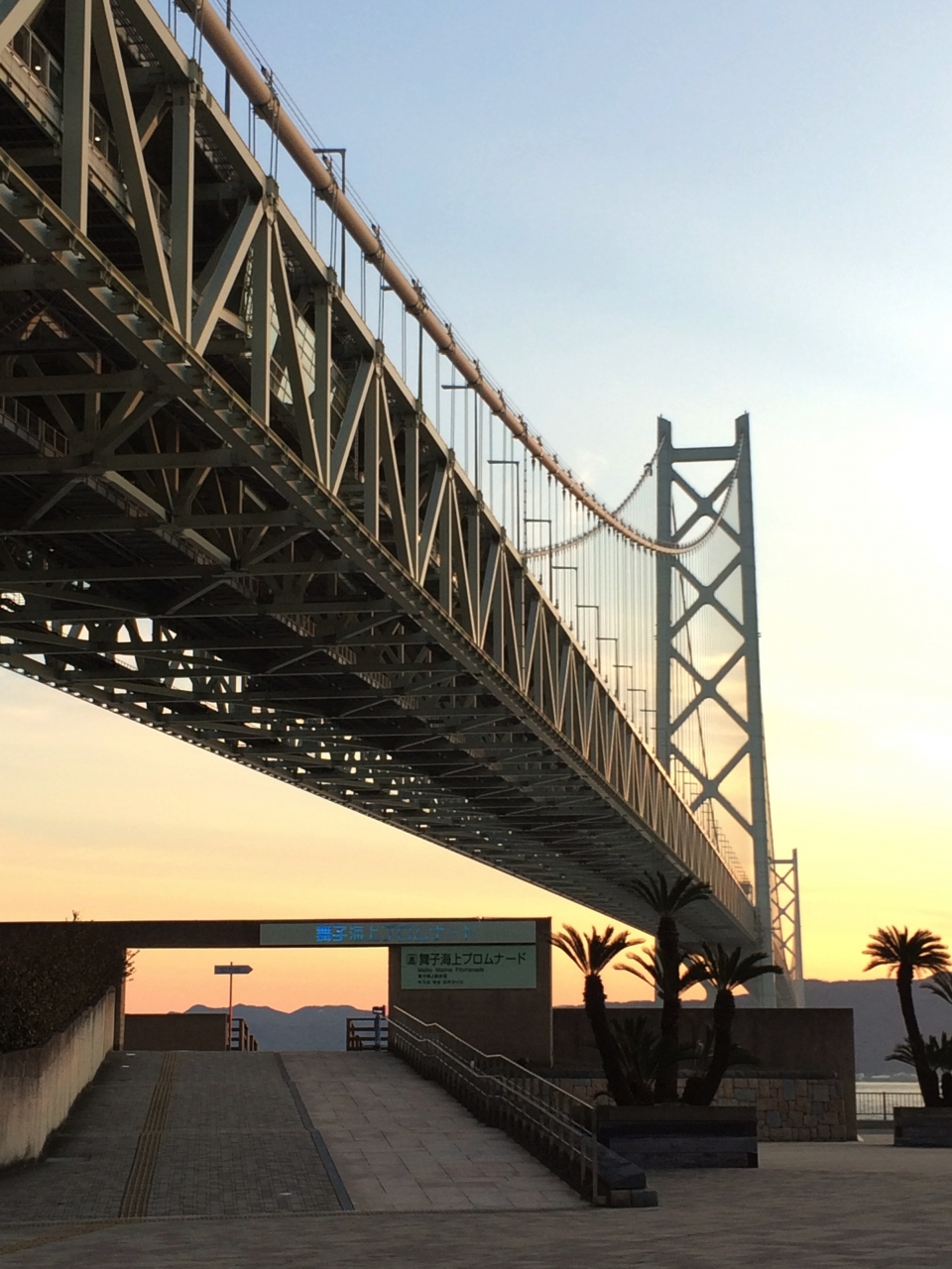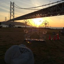 兵庫県立の都市公園です。JRや山陽の舞子駅からすぐで、駐車場も大きなものが用意されているので、交通の便は実にいいです。また、明石海峡大橋と海をバックにした夕焼けがとにかくきれいなので、夕焼けが来る前の時間は大砲みたいなレンズをつけたカメラマンがあちらこちらにいます。