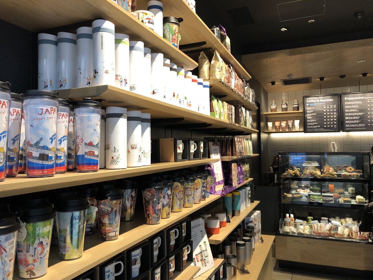 成田空港第二ターミナルのショッピングモールに出店しているスターバックスの店です。日本全国のマグカップが展示されておりもちろん購入することができます。スタッフは英語の応対もできました。スコーンとコーヒーで出発前にリラックスしました。海外でも展開しているチェーン店ゆえに外国人の利用が多かったです。