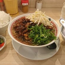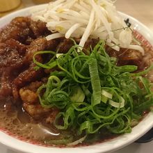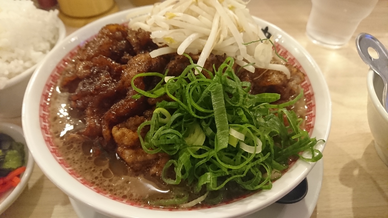 秋葉原の少し外れ、銀座線の 末広町駅が近い場所にあります。カウンター席とテーブル席の構成。1人でも複数でもオーケー。お客さんはほとんどか男性。店内には「肉がススム」「汁がススム」「麺がススム」と赤い登りで掲示されています。お店の中では、黒いTシャツを着たお兄さん3人が動き回っているという印象。外国人の店員さんはまだ見習いっぽくて、大盛りのご飯の量がいい加減。お肉を炒めてそれをバーナーで焼いたりするなど手間がかかるので少し時間がかかります。お肉の量でレベルわけ。今回はお肉270グラムのレベル3をオーダー。片栗をまぶしたお肉は甘いタレの少し濃い目の味で、食べごたえあり。ご飯が絶対に欲しくなります。麺は少しかための太麺で、インパクトは肉に負けていません。スープは醤油味で、お肉の衣が天かすのようになるので、少し脂っぽい。ご飯がないとかなり苦しいのと、体調があまりよくないときは避けたほうがよいかな。生卵付なので味変を期待しましたが、あまりしませんでした。がっちり行きたいときのお店。あくまでも肉が主役で麺は脇役。肉を食べるためのラーメンって感じです。