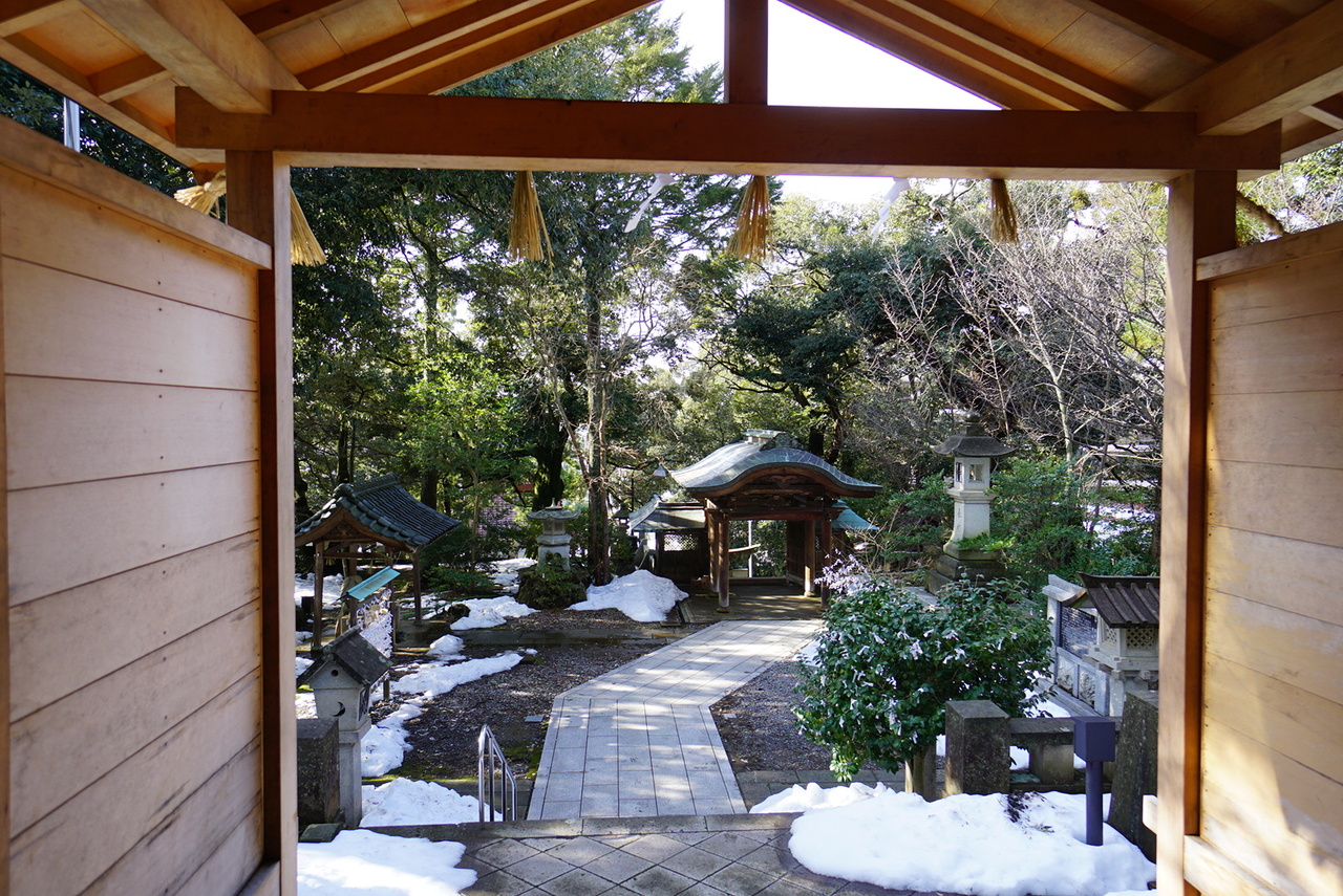 雪が積もっていて、小さな鳥居が数個あったりして風情あるお寺でした。