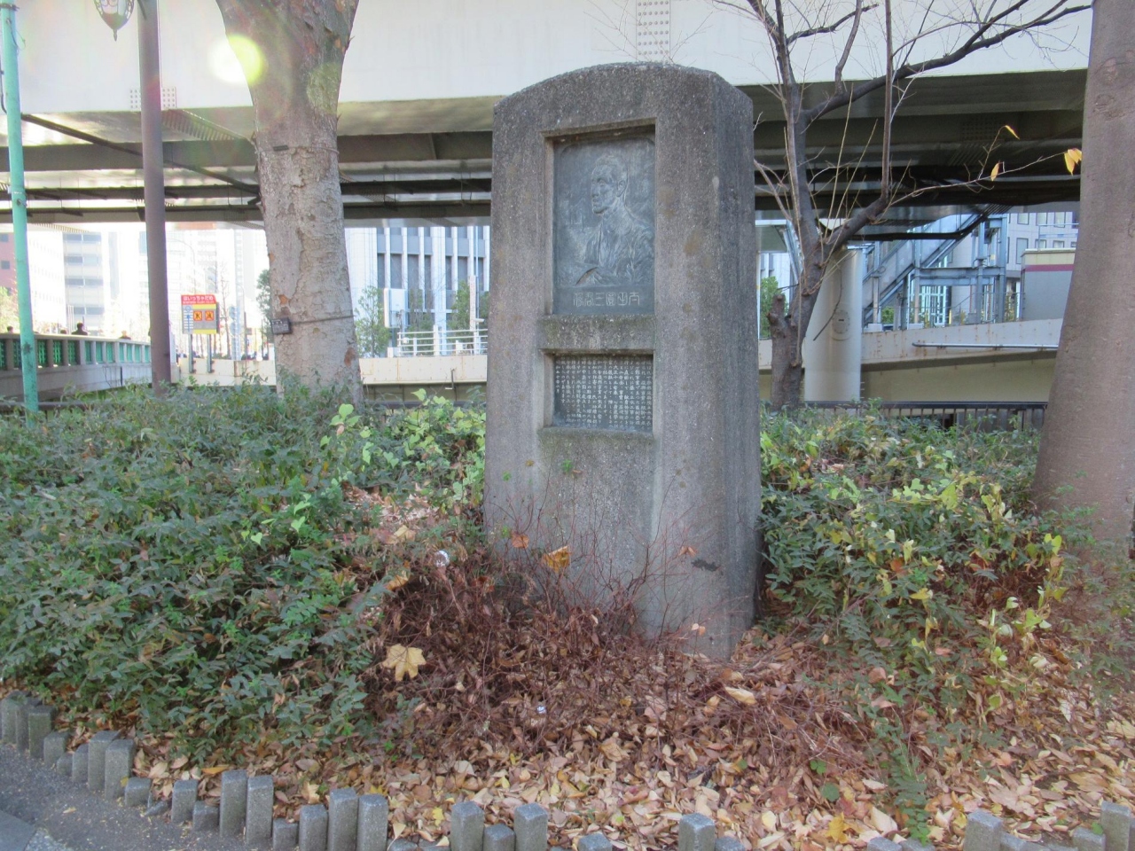 大手町界隈を散策中、神田橋北側の神田橋交差点から右 (西) 側を神田橋方向に歩いていると、橋の親柱右手前の植込みに何やら石碑があるのに気が付いた。