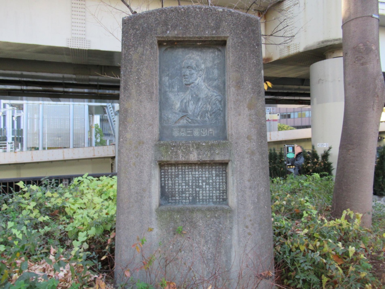 近付いて見るとコンクリート柱に、「太田圓三君像」入りの彫像と説明板が埋め込まれていた。