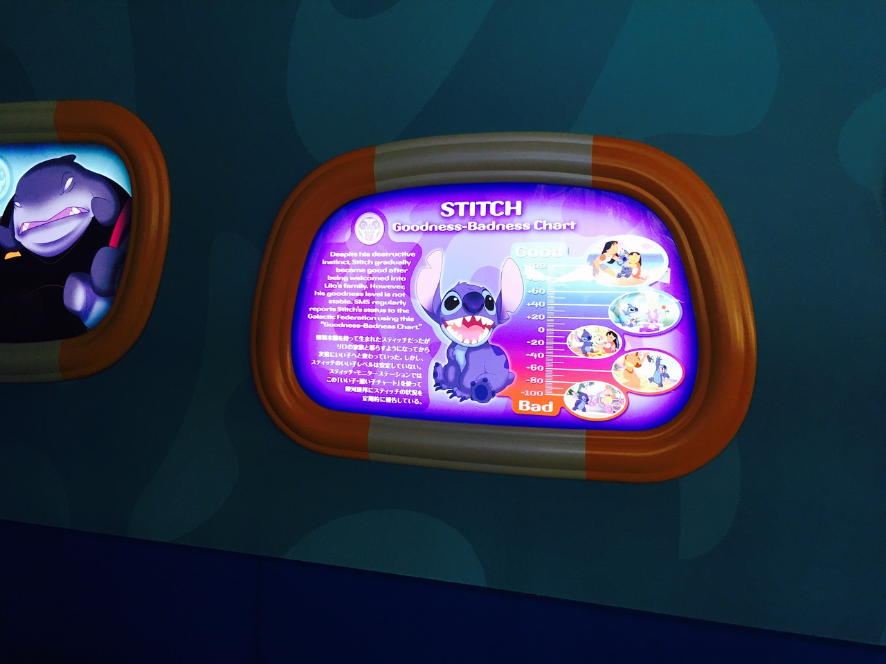 宇宙にいる交信してスティッチとお話したりゲームをしたり一緒に歌を歌ったりできる体験参加型アトラクションです。どの世代でも楽しめるので親子三世代で遊びに来た人にはおすすめです。突然スティッチから指名がくるかもしれないので心の準備をしておきましょう。回転率がいいアトラクションなので結構並んでるなーと感じましたがタイミングが良かったのか思ったより待ち時間が少なかったです。15分待ちでした。