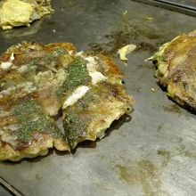 お好み焼きに、これでもか!とばかりにネギが投入されていますが、これが絶品!