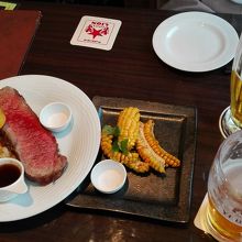 ビール、ソーセージ、ステーキなどと、これぞ「ビアホールの味」がたまりません!