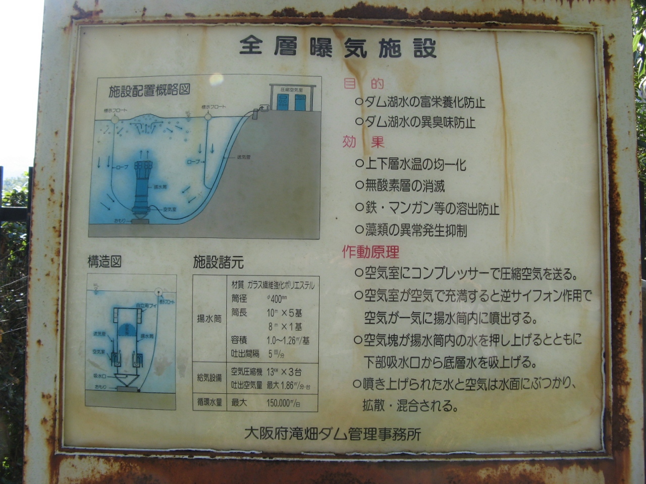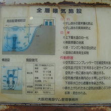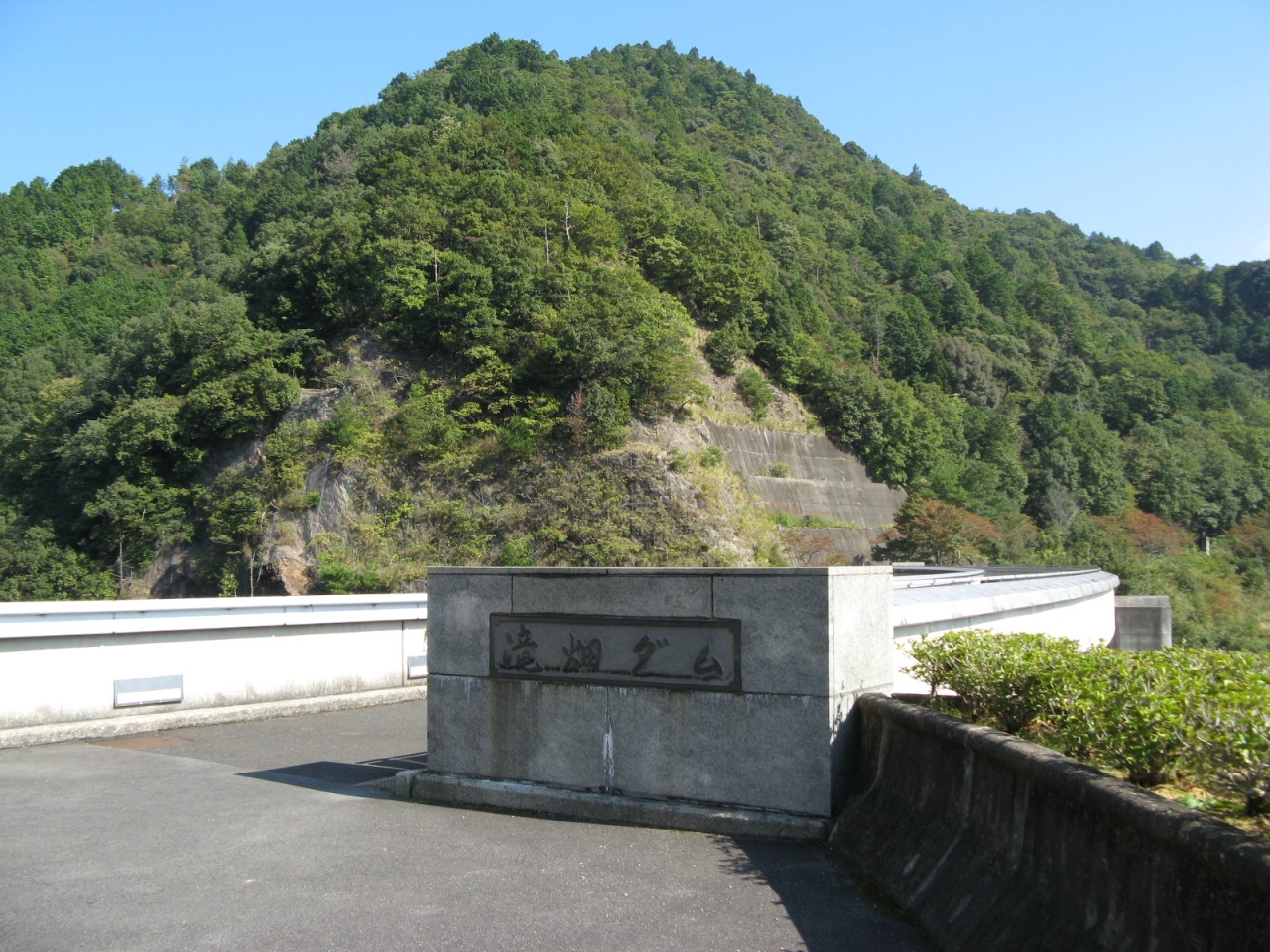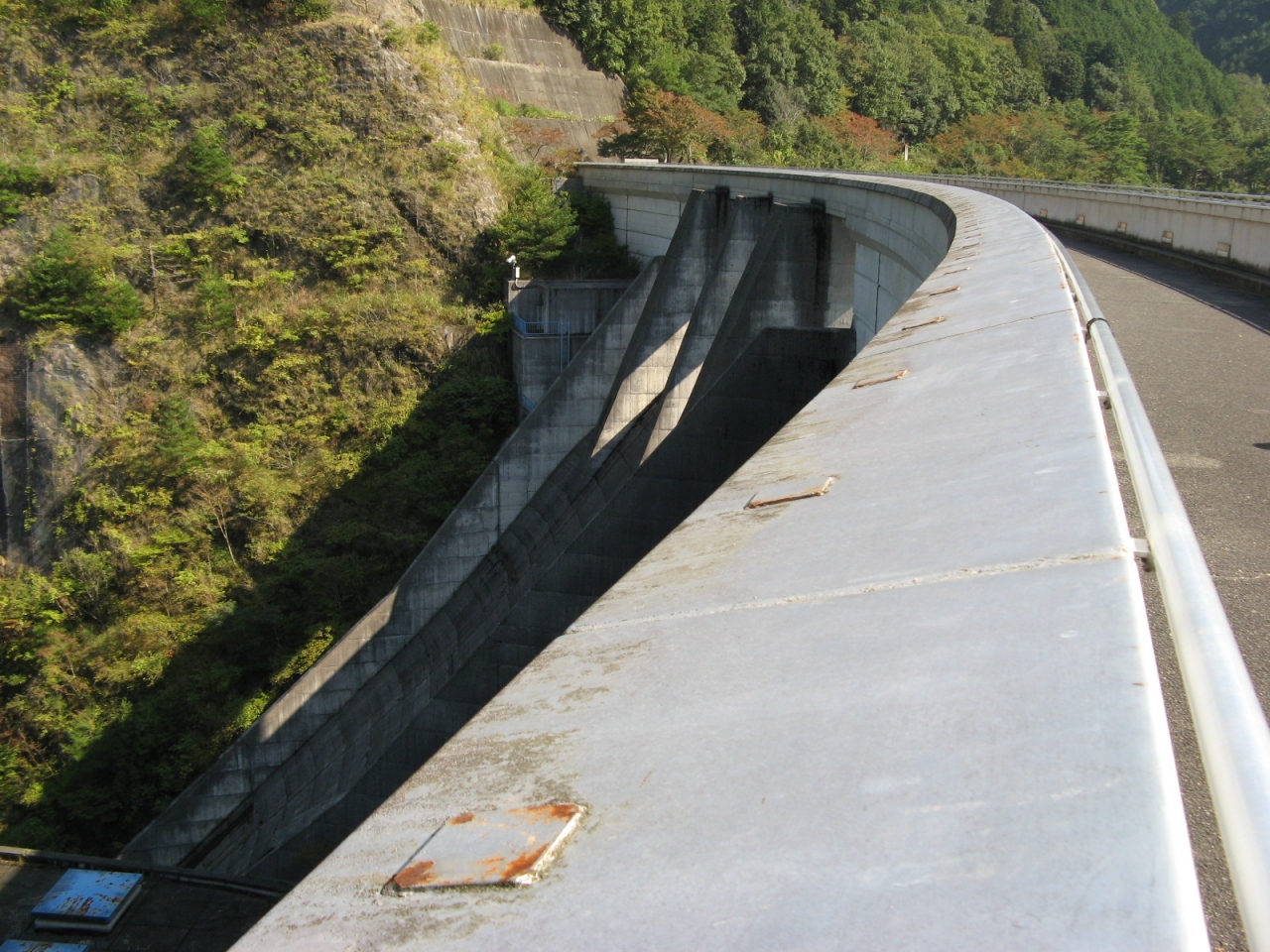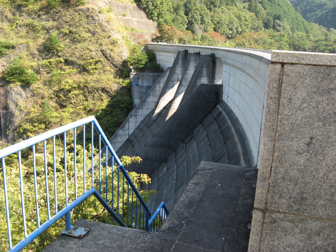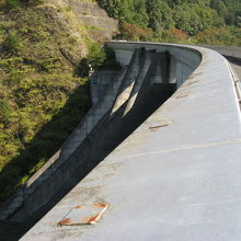 洪水調節、上水、灌漑などを目的とした、堤高62m、堤頂長120.5mの重力式コンクリートダムです。 重力式コンクリートダムですが、堤は緩やかに曲線を描いていて、一見アーチダムに見えます。