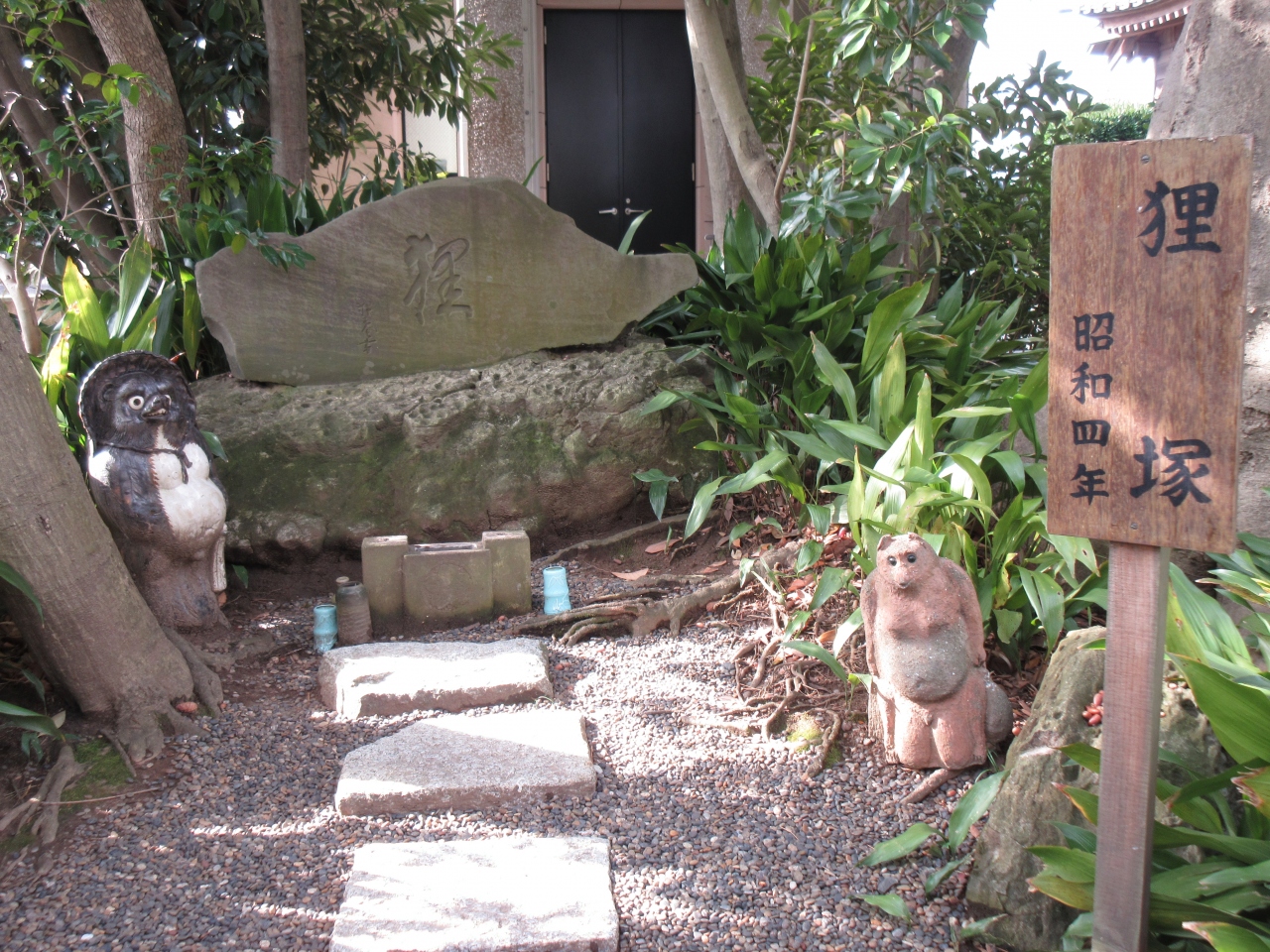 木更津にある唯一の浄土真宗寺院です。江戸初期に建立されました。雅楽を用いた法要が村民に珍しがられ、狸ばやしの伝説が伝わったとされています。木更津を訪れた野口雨情がこの伝説をもとに証城寺の狸ばやしを作り、中山晋平作曲で童謡ができました。境内には童謡碑や狸塚があります。狸ばやしで有名な證誠寺の本堂は木造で大きく、狸の額が奉納されています。訪れた時は境内に椿や紅梅が咲いていました。手入れされた木々や草が茂った境内は静かで心が落ち着きました。木更津を訪れた際に寄ってみてはいかがでしょうか。