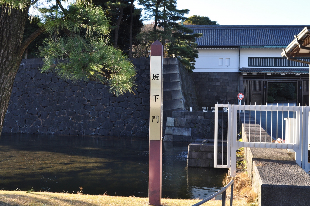 皇居の南東側、宮内庁のすぐ手前にある門です。訪問したのが2016年の年末ということもあって閉鎖されており中を通ることはできませんでした。手前に警察官がゲートを張っており、完全に封鎖していました(バイク便のようなバイクが通るときは開けていましたが)。かなり厳重な警備で、ゲートに近づいて門の写真を撮ろうとすると、それ以上前に出ないでくださいねーと優しく注意されました。坂下門といえば1862年に起きた坂下門外の変が知られています(失敗に終わったため、桜田門外の変と比べるとあまり知られていないかと思いますが)。桜田門外の変からわずか2年後にまた同じような場所で暗殺未遂事件が起こったことをふと思い出しました。残念ながら、坂下門外の変に関する案内や掲示物は一切ありませんでした。それくらく作ってくれてもよさそうなのに、と思いましたがあまり皇居周辺に史跡などはむやみには作れないのでしょうね。