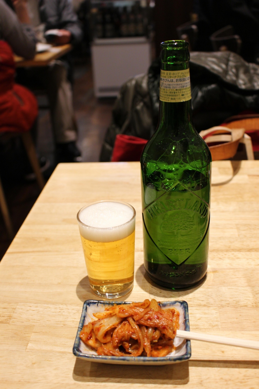 キムチをつまみに瓶ビールをチビチビ飲んでいると、