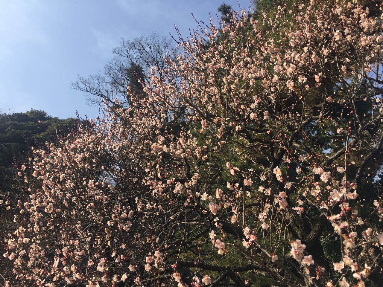 1月 花は少ないが 梅は早咲きの梅が咲いていて 満開の木、咲きかけのまさに梅らしい美しい木があった。