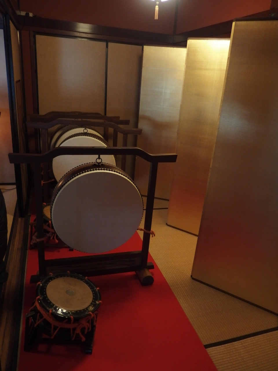 江戸時代に東山ひがし茶屋町ができた時からあるお茶屋さんで、国の重要文化財にも指定されていますが、内部は500円にて見せてもらえます。お茶屋遊びをする場は2階になっており、金屏風や鼓などの備品が展示されていました。一階には芸者さんのかんざしなどの展示もありいずれも歴史的なものと感じられました。