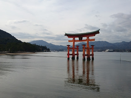 有名な鳥居は海の浅瀬にある。