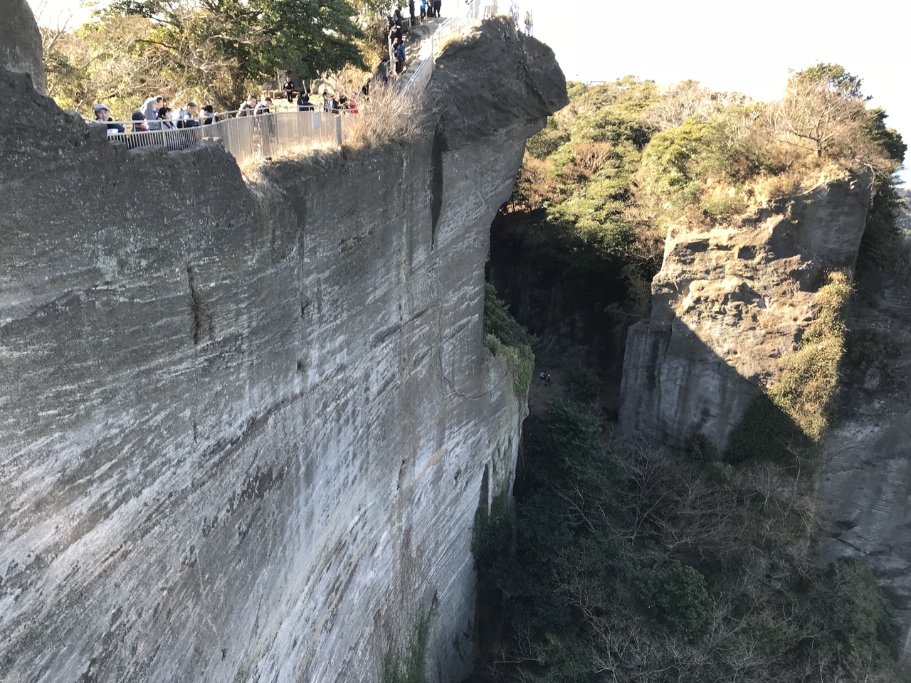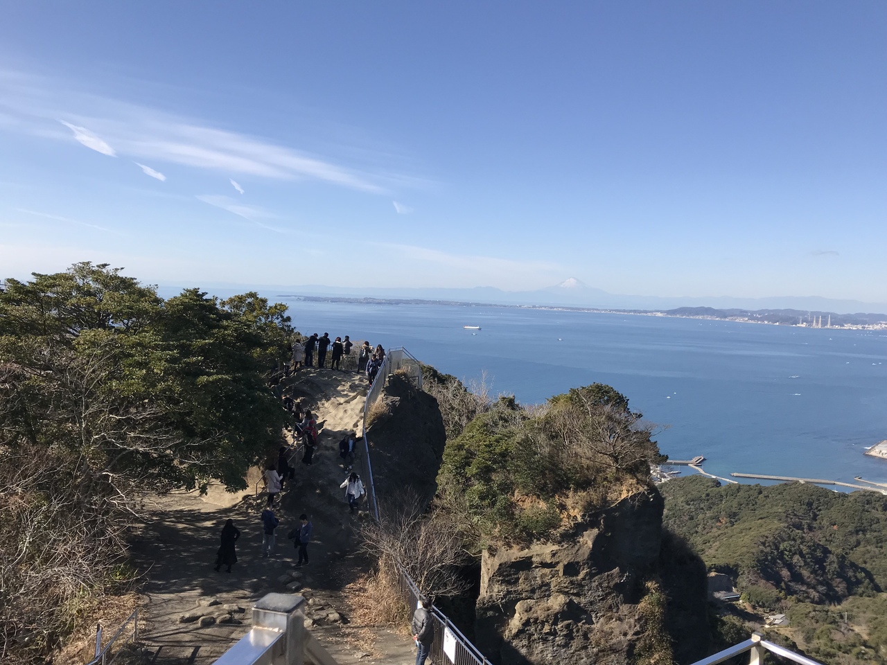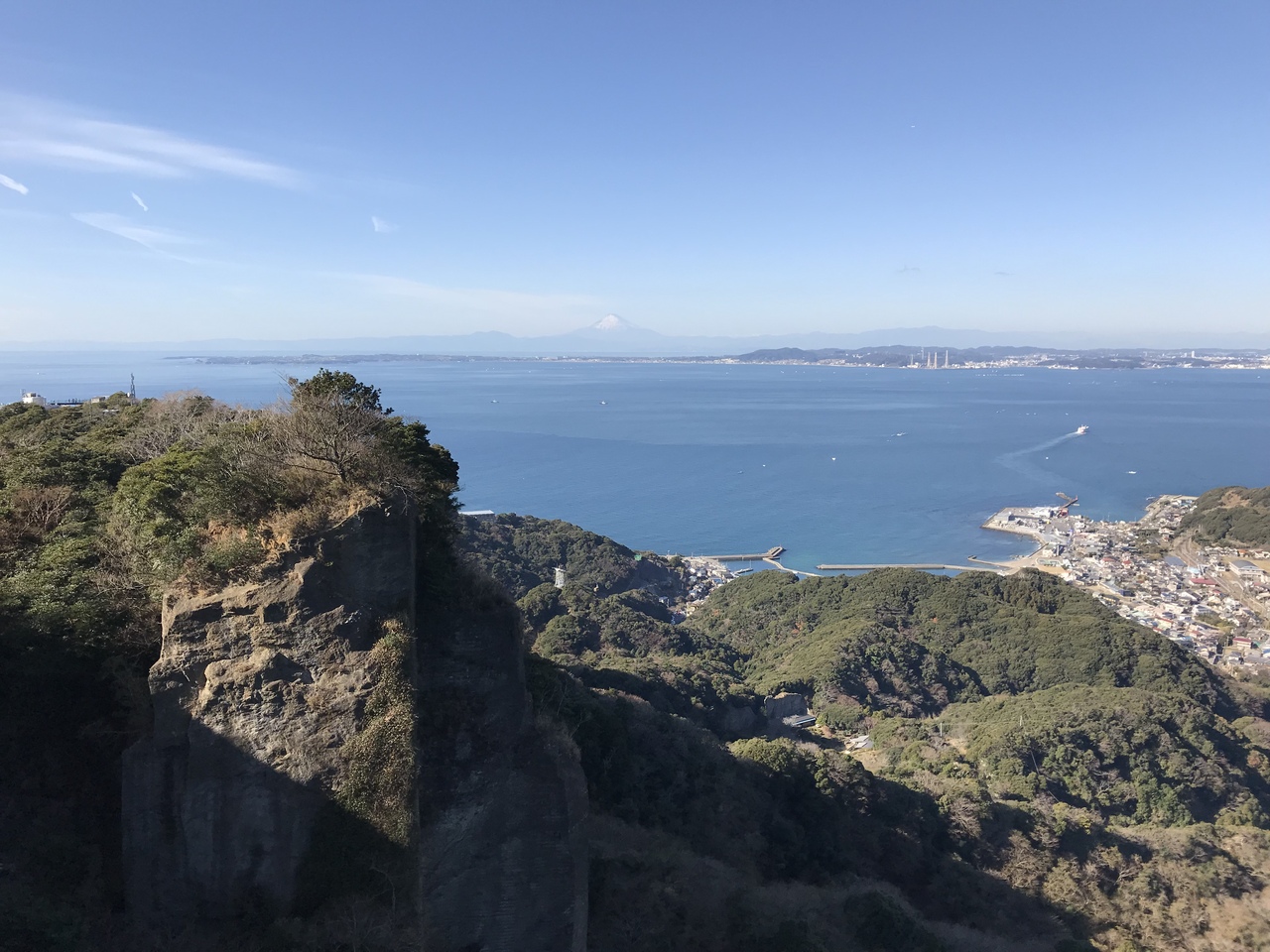 当日の天候は快晴。"地獄のぞき"からの展望は絶景にふさわしく、東京湾越しに雪を被った富士山を眺めながら、地球が丸い事を実感した。
