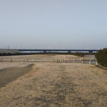 淀川の河川公園沿い、寝屋川市付近にある河川公園に遊びに行きました。芝生が冬で白かったです。霜柱が結構立っていたのか、太陽が出てきて地面は少しぐちゃぐちゃでしたが、広い広場があるので運動に楽しめました。帰りの駐車場はかなり混んでいたので、土日は早めに行ったほうが良いですね。