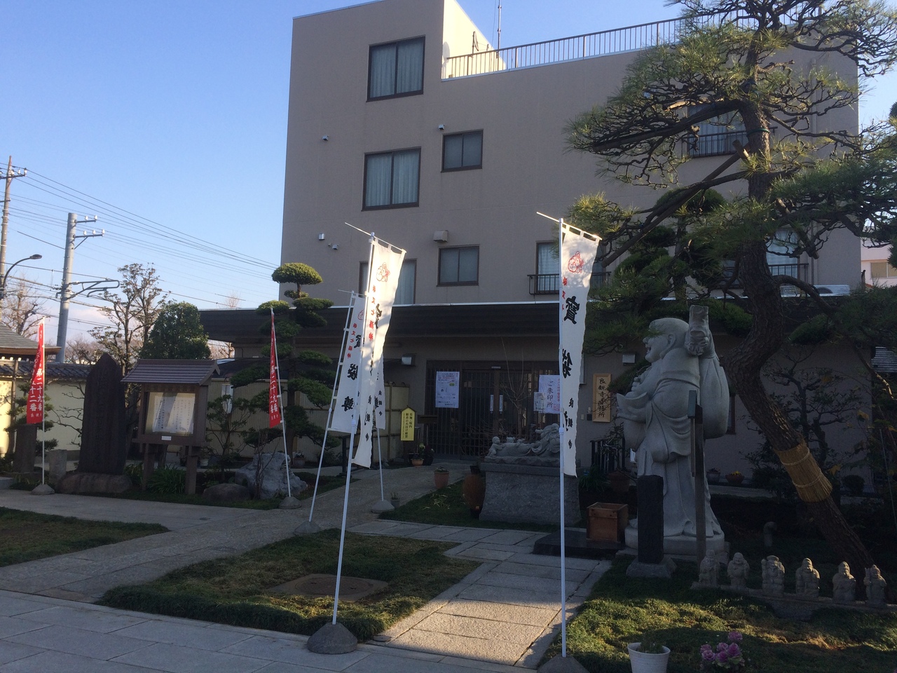 金町駅から柴又帝釈天まで歩いている途中にありました。線路沿いで中に入ると七福神の宝袋尊像が大きなお腹を出して迎えてくれました。新四国八十八ヶ所の29番札所でもあるようです。敷地はお墓が大半を占めていました。