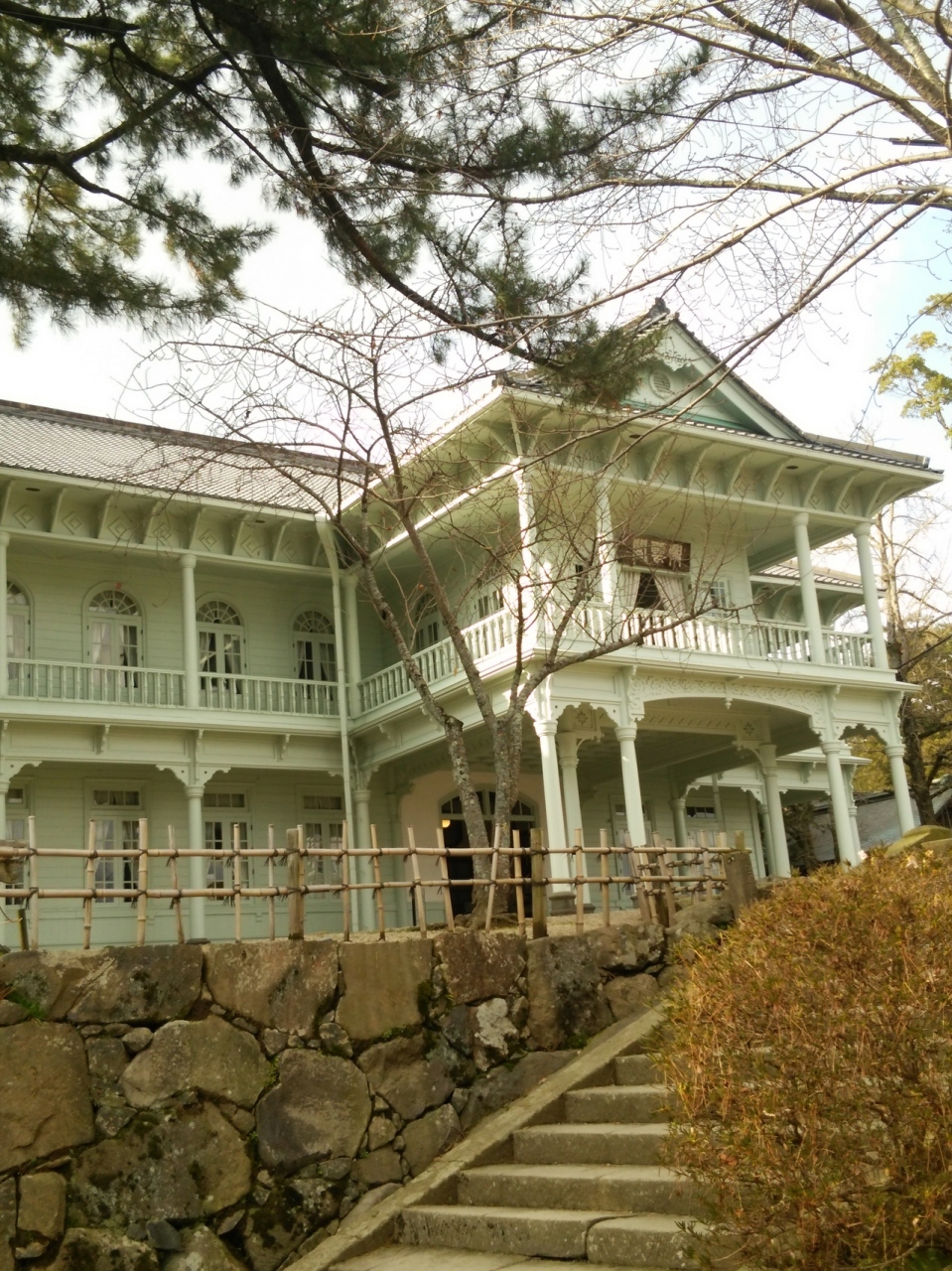松江城の敷地内に建つ洋館は、大正天皇が皇太子時に宿泊された由緒ある建物。数年前にリニューアルして、大正ロマンを感じる喫茶室が入りました。館内は自由に見学できるので、松江城と合わせて散策されるのが定番です。冬場は寒いので、空いてます。