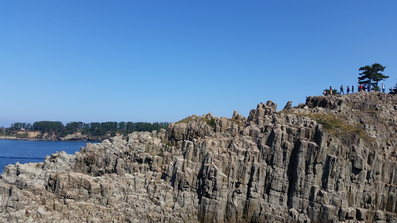 東尋坊でびっくりしたのは、崖のギリギリまで普通に歩いて行けるところです。手すりがないし、行こうと思えばどこまででも行けちゃいます。