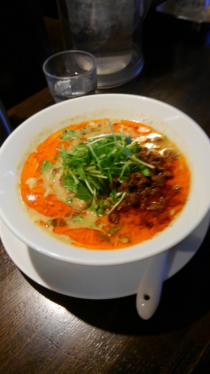 おいらはつゆなし黒胡麻担々麺(辛さ5、痺れ4)、妻は担々麺(つゆあり、辛さ3、痺れ2)を食べましたが、どちらもマイウーでした。
