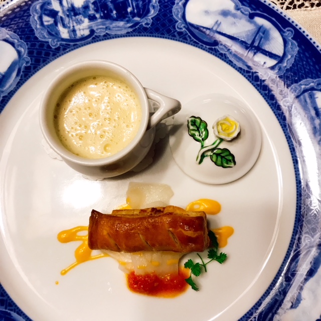 使われたお皿も白地に青色でオリエンタルな絵が描かれて美しいものばかりでした。