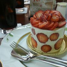 悩んだ末イチゴのケーキを選択。スプーンでいただくタイプのケーキで、生クリームが好きな方には特におすすめです。