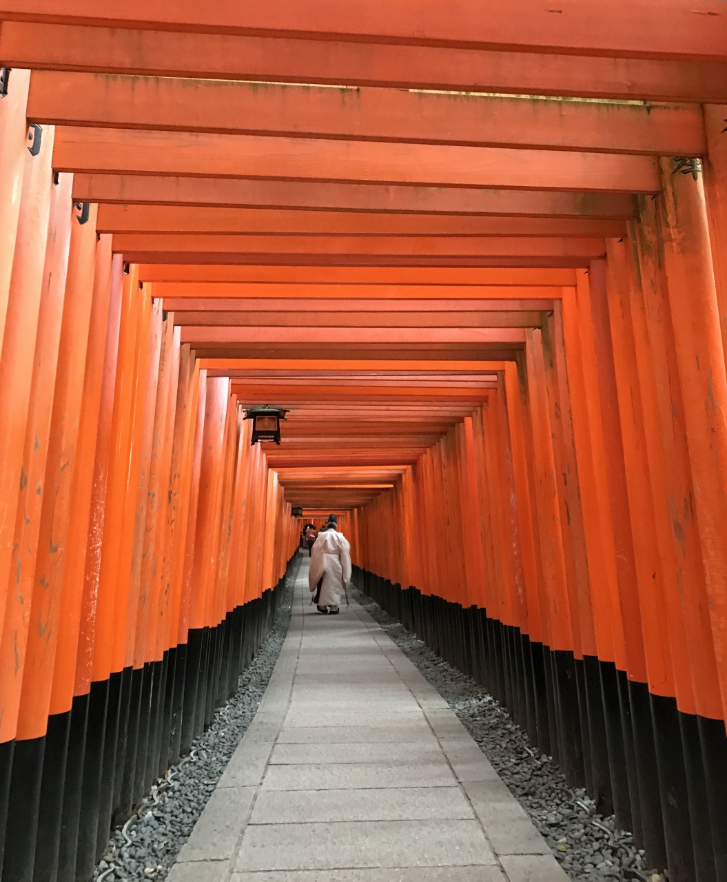 朝8時に着くように行きました。この時間だとまだ人も少なく静かで、ぴんと張った冷たい空気の中朱色の鳥居が延々と続く神秘的な景観はやはり感動ものでした。ここから奥社→四ツ辻→一ノ峰と延々と鳥居が続いて行きますが、千本鳥居が一番間隔が密で幻想的な雰囲気でした。