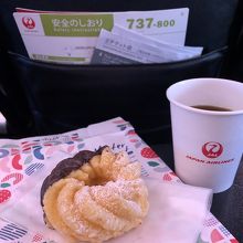 関西国際空港の第1ターミナルの国内線手荷物検査場の手前にあるお店です。朝イチの便で朝食がてらドーナツ1つを購入しました。機内でコーヒーが飲み物として選べるのに合わせてのものでした。酸味が多少きいたブラックコーヒーとの相性が良かったです。