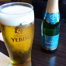 エビスビールや、スパークリングワイン、それにおつまみや軽食を、飛行機を眺めながらお楽しみください。