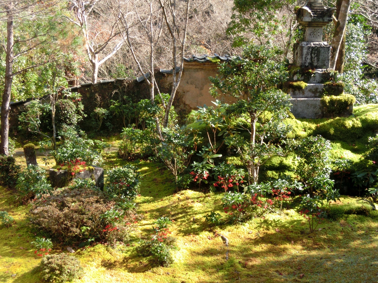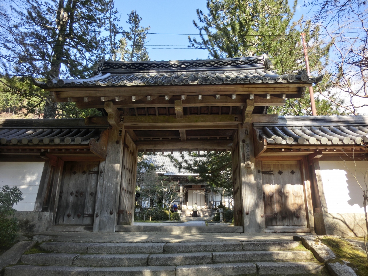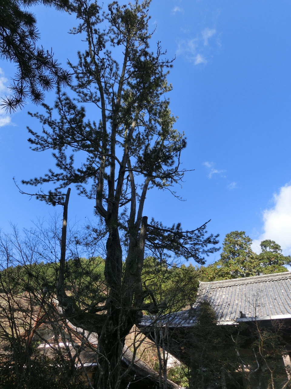 神護寺を下山、清滝川に掛る朱の橋を渡って左に川沿いの路を進みます。案内があるので道に迷うことはありません。神護寺から15分程です。裏参道から槇尾山西明寺に入ります。小さな境内です。本堂に上がり御本尊の釈迦如来、脇陣の千手観音、愛染明王に参拝します。どれも見事な仏像です。釈迦如来は運慶作です。本堂から眺めた庭にはマンリョウが沢山の赤い実をつけており綺麗でした。初冬の平日の正午近く、陽だまりの中、本堂の廊下に座りお寺のパンフレットを読みますが何とも言えない心地よさです。本堂前には樹齢700年の槇の木があります。表門から出て表参道を下山しました。三尾三山の一つで小さいながらも存在感のあるとても気持ちのよいお寺でした。