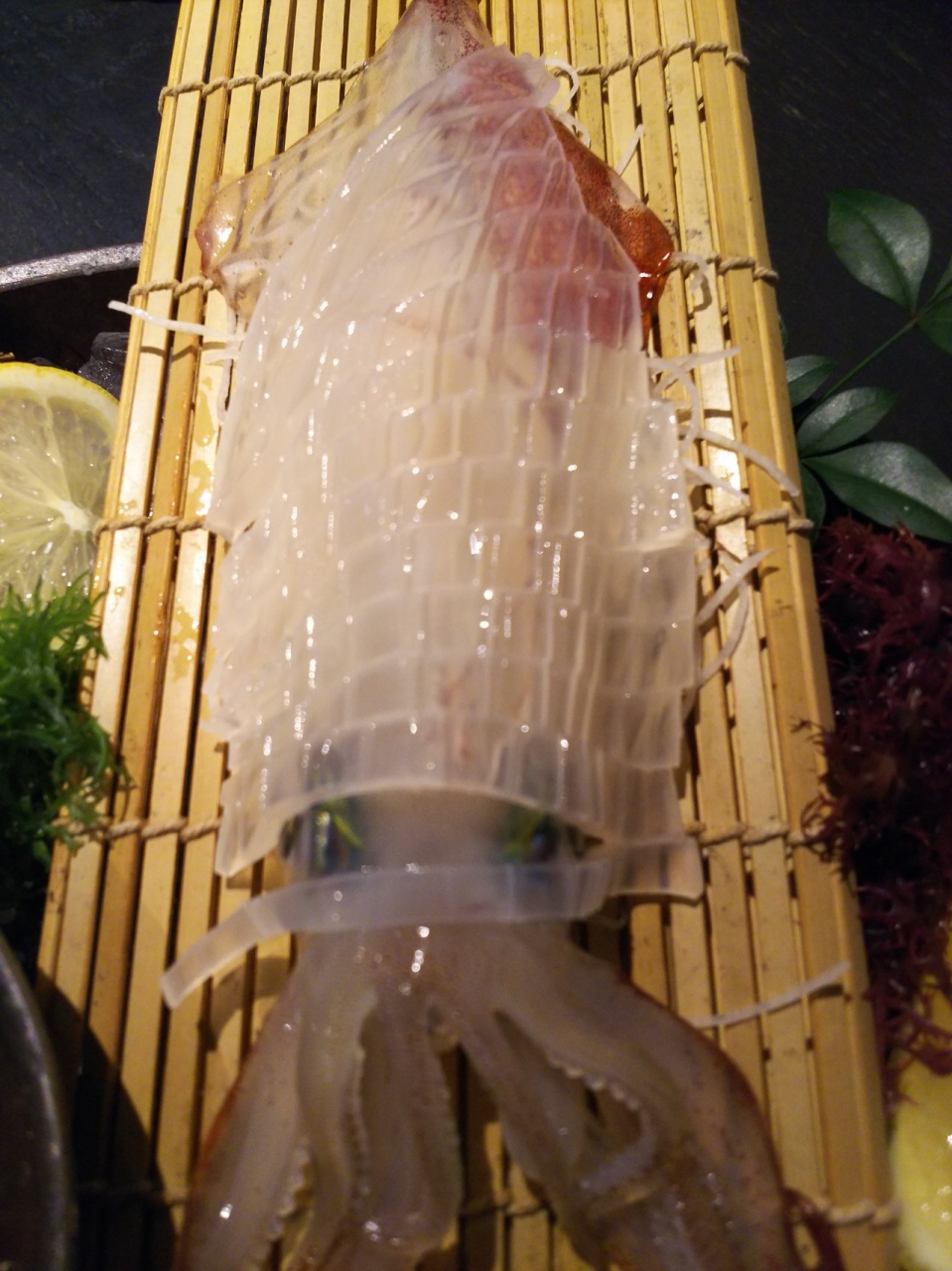 天神から中洲方面に歩くこと5~6分、住宅などが並ぶ細い通りを入って行ったところにある居酒屋です。このお店は魚料理が美味しいと聞いたので刺身を中心に頼みました。噂通り、刺身は新鮮で美味しかったです。特に、ヤリイカの活造りは身が透き通っており、美味しかったです。