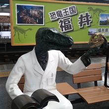 電車を降りたホームに恐竜が!駅に着いた途端楽しいです。