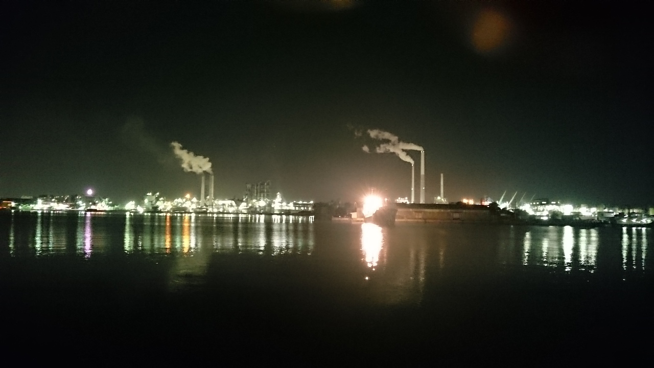 通常夜景と言えば山から繁華街の街明かりのイメージが強いですが、周南市の徳山地区はコンビナートの工場の明かりが夜景になってます